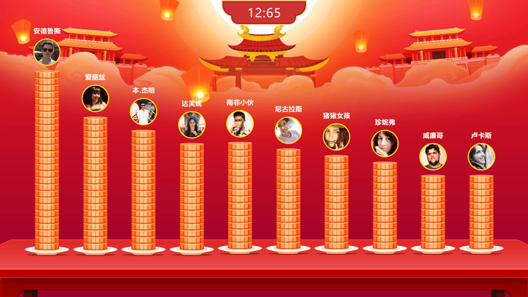 这是一款考验反应速度的游戏。大屏幕上随机出现“月饼”图标,参与者需要在手机端快速点击出现的月饼。图标出现的位置、大小、时间都随机变化,增加了游戏难度。在限定时间内,点击正确次数最多者获胜。游戏节奏快,画面生动,非常适合年轻人和儿童参与,现场欢呼声此起彼伏,将气氛推向高潮。
